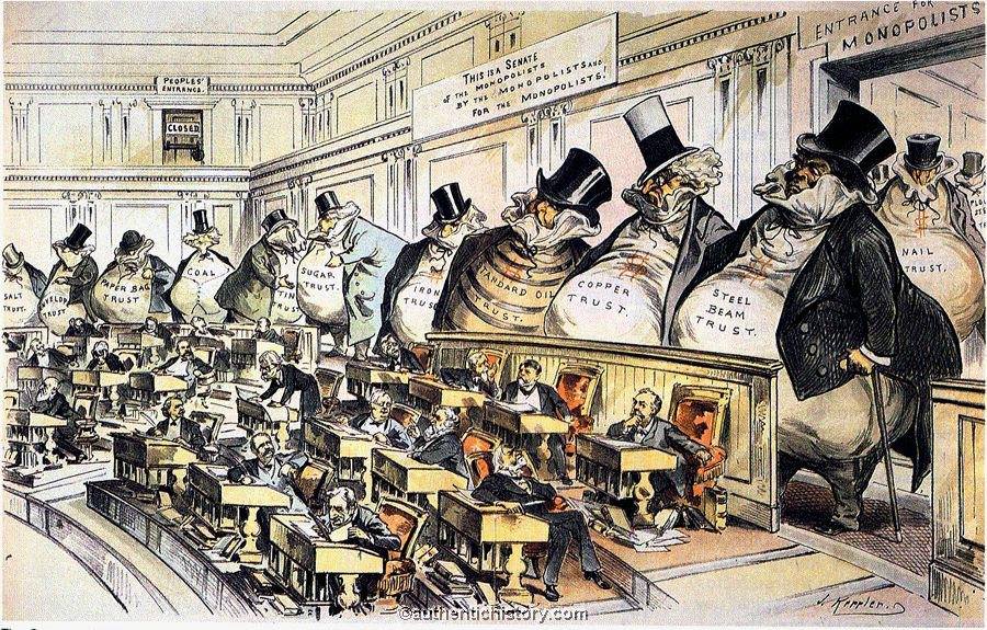 1889 editorial cartoon “Bosses of the Senate” by Joseph Keppler resonates still. Notice the ‘People’s Entrance’ door on the upper left: It is boarded shut.