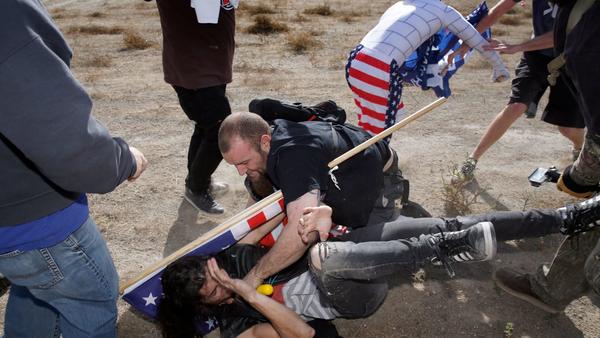 A vocal group of people eager to see President Donald Trump’s border wall completed gathered in East Otay Mesa on Saturday at a rally event that briefly turned violent during a clash with counter-protesters.