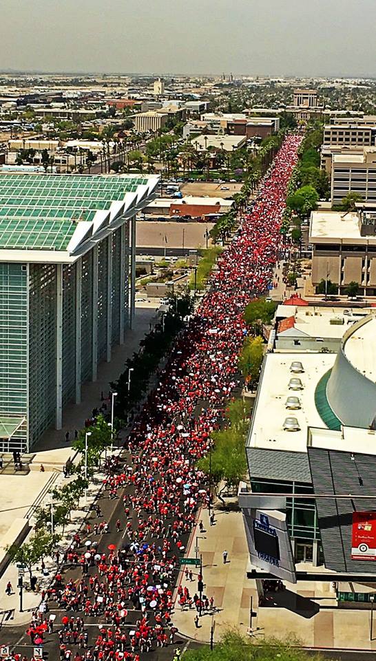 Arizona, where Hackett lives, is one of the latest states where teachers are walking off the job in protest of low pay and inadequate school funding, after Oklahoma, Kentucky and West Virginia. Colorado teachers, too, have scheduled demonstrations, and schools are closing this Thursday and Friday. www.npr.org/sections/ed/2018/04/26/604117045/npr-ipsos-poll-most-americans-support-teachers-right-to-strike?utm_source=twitter.com&utm_medium=social&utm_campaign=politics&utm_term=nprnews&utm_content=20180426