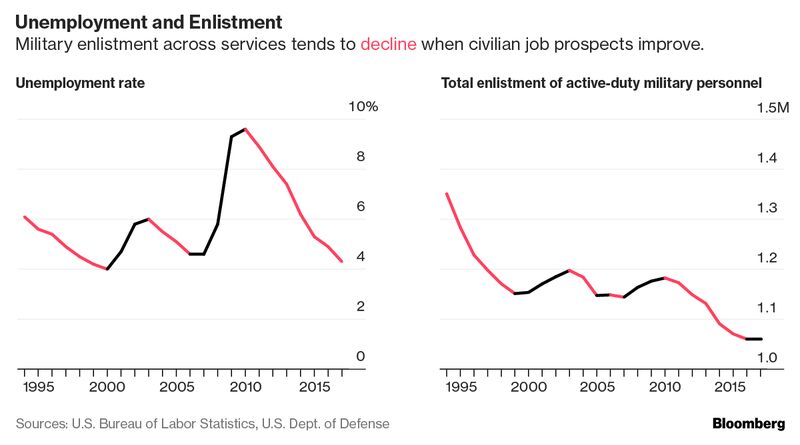 Low U.S. Unemployment Is Making Army Recruiting Harder (don’t panic–war still means work)